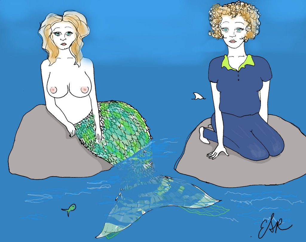 This old drawing of mine has nothing to do with AI and in fact was drawn before AI’s emergence, but it came to mind, so voila. I guess AI is the mermaid and the clothed woman with no tail is the human?